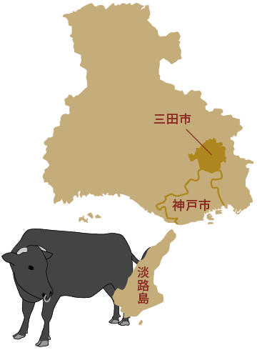 たき屋が扱う兵庫県産の黒毛和牛は、兵庫県三田市の山奥の清らかな水と豊かな大地、朝夕の冷たい空気に包まれた自然の中でじっくりと育てられた未経産の雌牛で、伝統的な肥育方法と経験豊かな職人の手で手間ひまかけて育てられました。